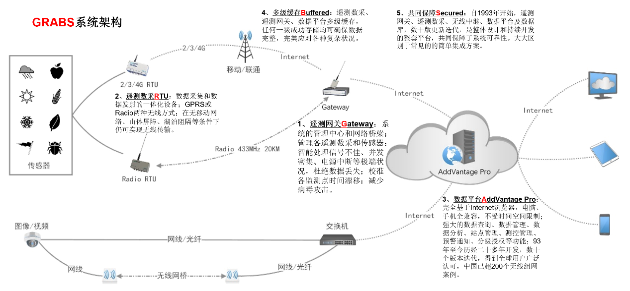 GRABS技术是一套全地形全天候无线监测技术平台,基于GRABS技术可为用户定制适应各种生态类型和区域跨度的无线监测解决方案。